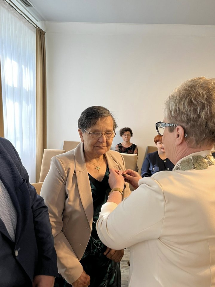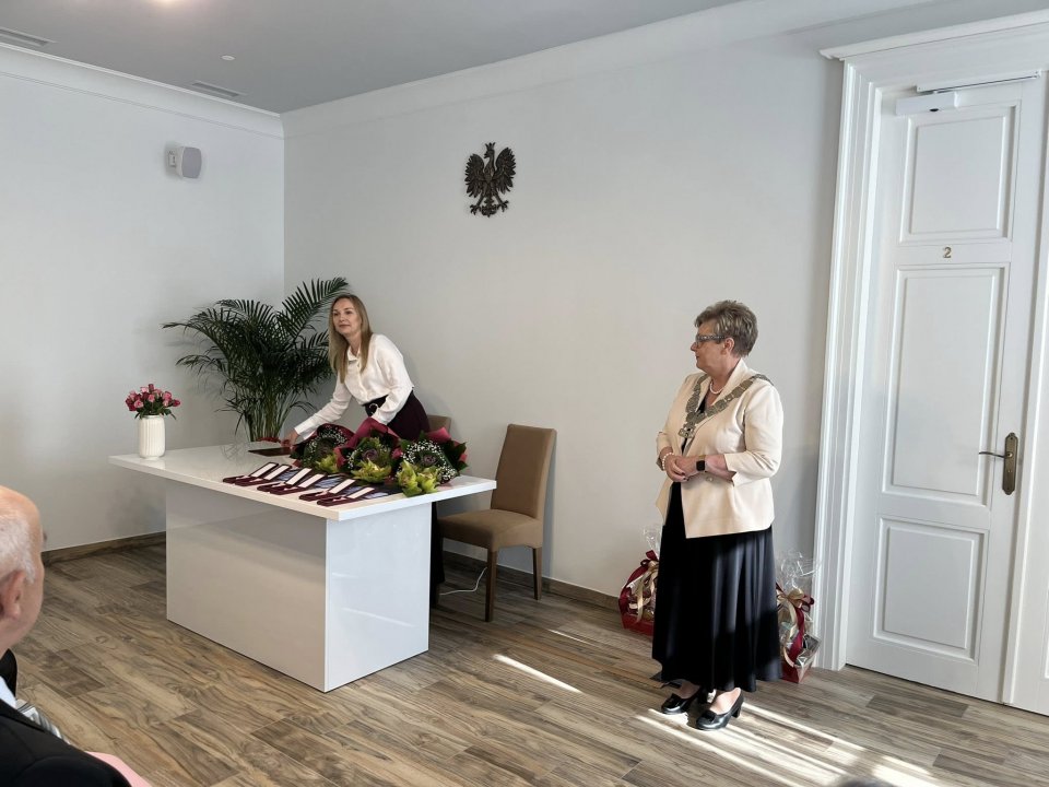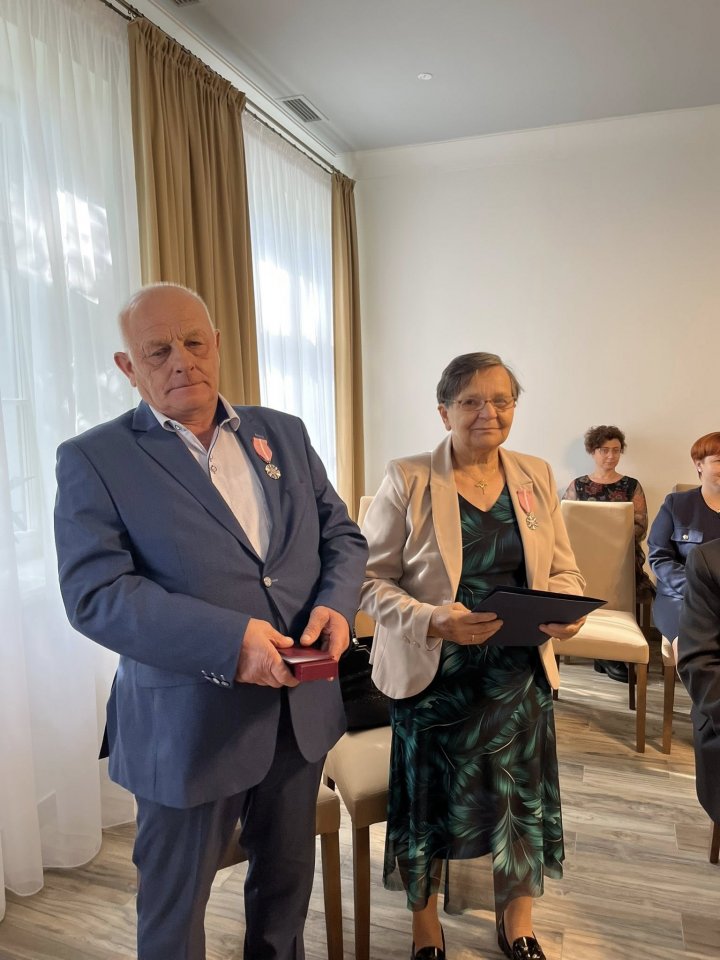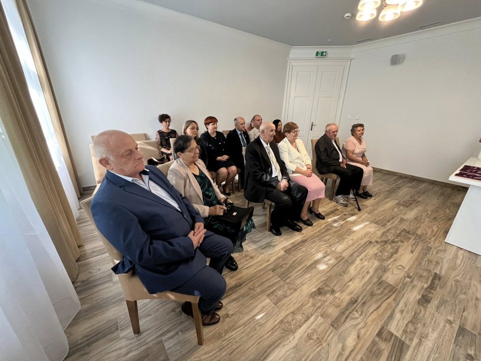 Medal za długoletnie pożycie małżeńskie nadaje Prezydent Rzeczypospolitej Polskiej tym parom, które przeżyły 50 lat w jednym związku małżeńskim. Jest to dowód społecznego uznania dla trwałości małżeństwa i rodziny. Aktu dekoracji Jubilatów dokonała Wójt Gminy Łęki Szlacheckie Grażyna Lasek. Następnie Przewodniczący Rady Gminy- Mariusz Majchrzak, Kierownik Urzędu Stanu Cywilnego- Daria Kacprzykowska oraz Sekretarz Gminy- Grzegorz Stępień wręczyli Jubilatom pamiątkowe dyplomy, upominki oraz kwiaty. Po części oficjalnej goście zostali zaproszeni do wspólnego zdjęcia pamiątkowego oraz poczęstunku. Atmosfera była pełna ciepła, wdzięczności i wspomnień, a uśmiechy Jubilatów najlepiej oddawały radość z tego wyjątkowego dnia.